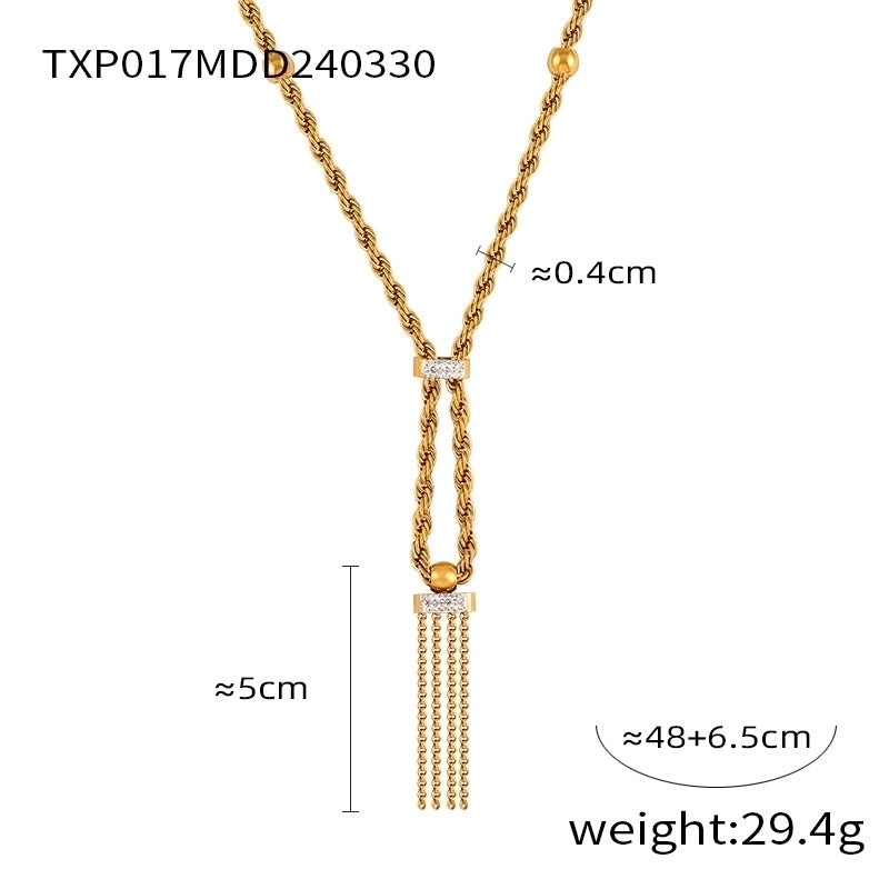 Titanium Steel 18K Gold Plated Lady Minimalist Classic Style Plating Inlay Twist Rhinestones Zircon Jewelry Set