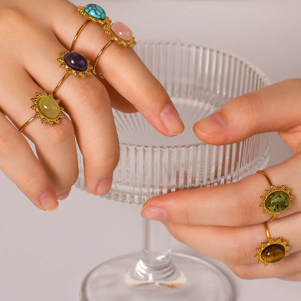 Unisex IG Style Ellipse Round Geometric Stainless Steel Electroplating Rings