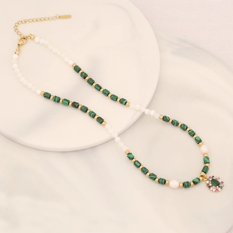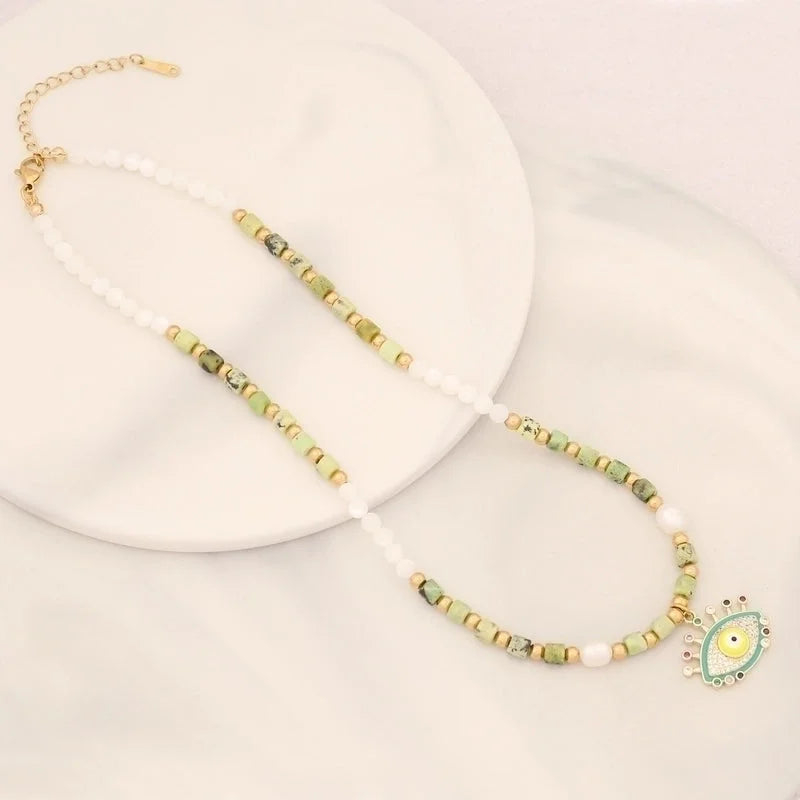 Vacation Bohemian Devil'S Eye Heart Shape Artificial Pearl Natural Stone Copper 18K Gold Plated Zircon Pendant Necklace In Bulk
