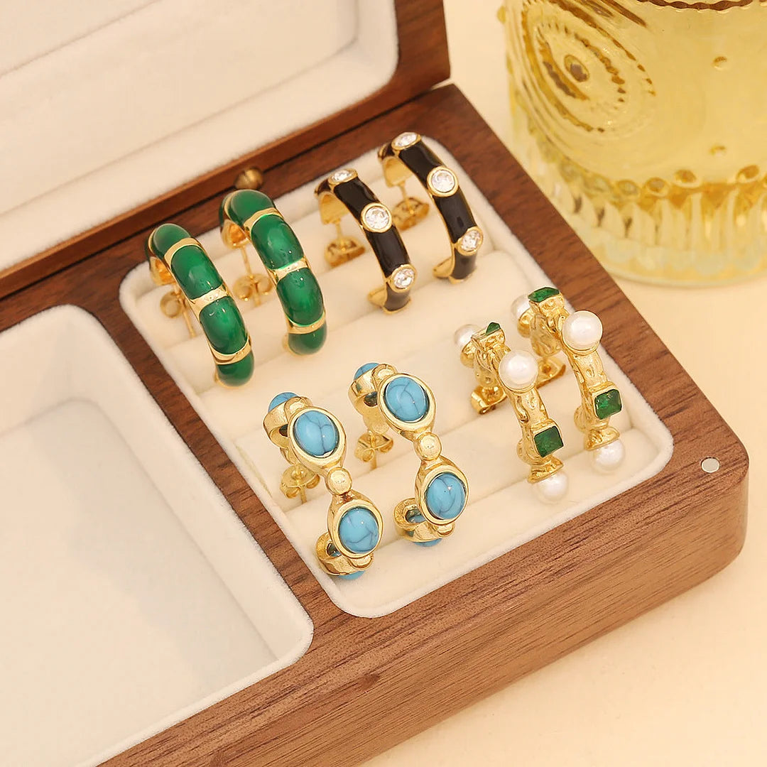 Vintage Retro Stripe Stainless Steel Oil Dripping Earrings