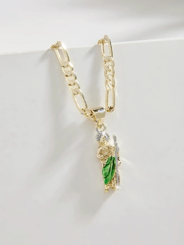 Vintage Style Classic Style Human Geometric Father St. Jude Copper 18K Gold Plated Pendant Necklace