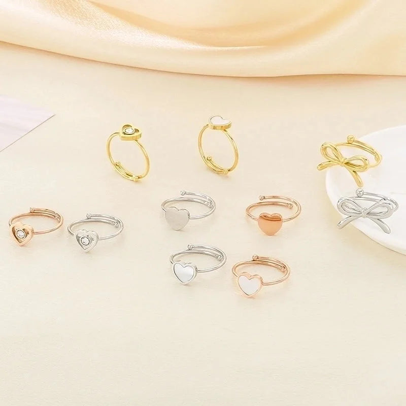 Vintage Style Heart Shape Bow Knot 304 Stainless Steel 18K Gold Plated Open Rings