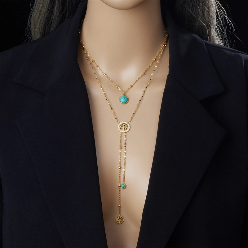 Vintage Style Life Tree Flower Bow Knot 304 Stainless Steel Pendant Necklace