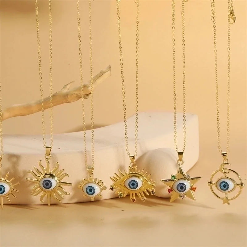 Vintage Style Minimalist Commute Sun Copper Plating Inlay Resin Zircon 14k Gold Plated Pendant Necklace
