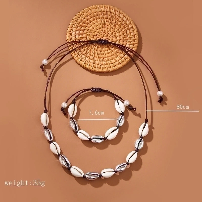 2 Pieces Hawaiian Shell Polyester Shell Bracelets Necklace