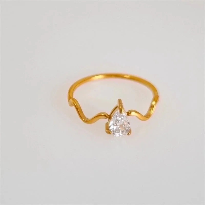 Lady Geometric Titanium Steel Zircon Inlay Rings
