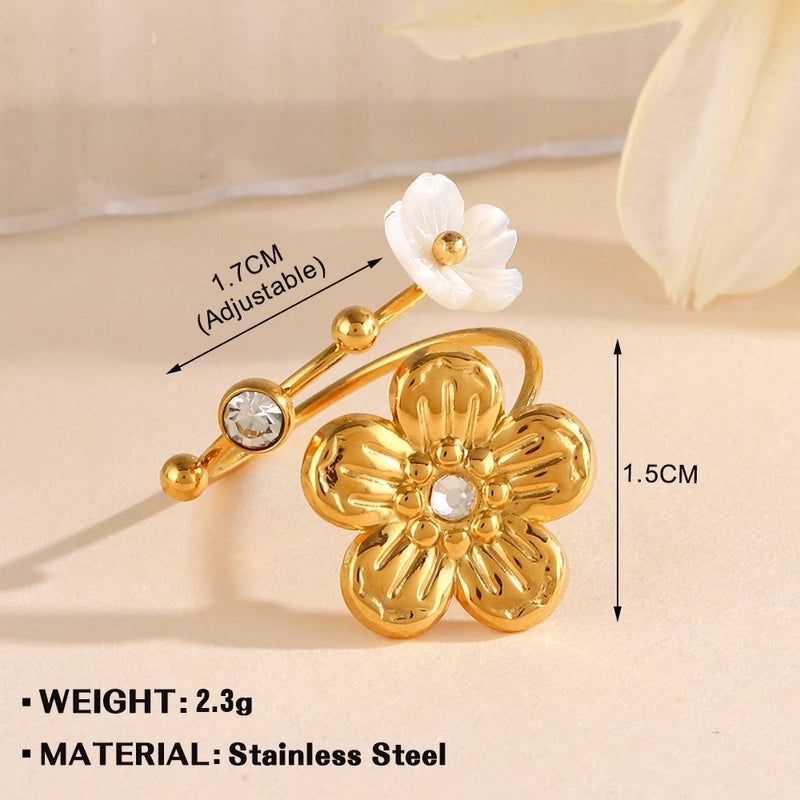 Minimalist Flower 304 Stainless Steel Plating Open Rings