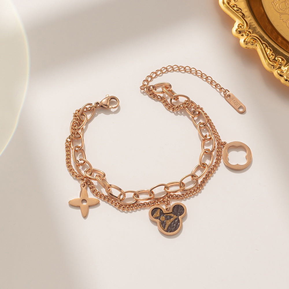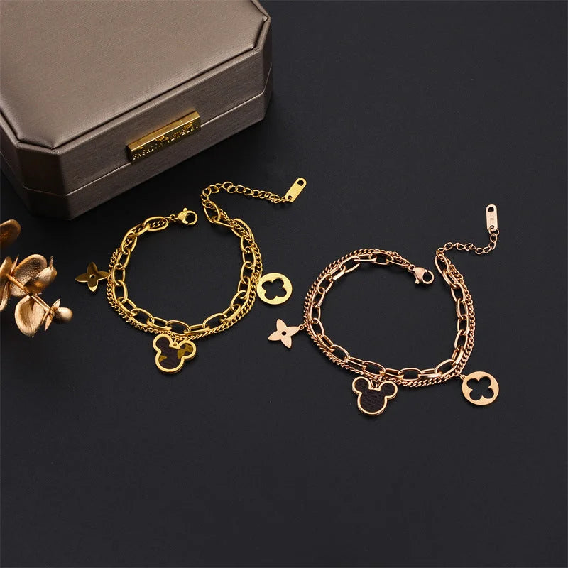 Women Cartoon Animal Chinese Zodiac Titanium Steel 18K Gold Plated Bracelets