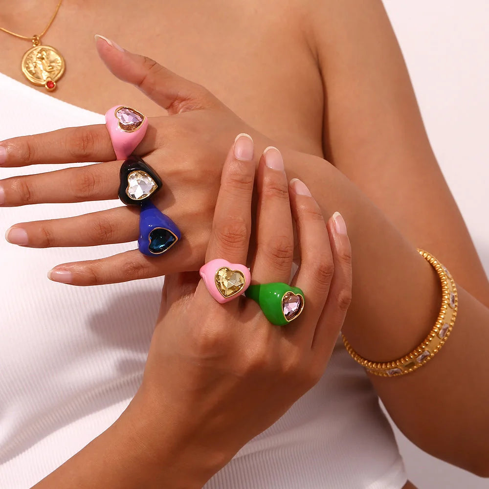 Women Fashion Heart Geometric Stainless Steel 18K Gold Plated Rings