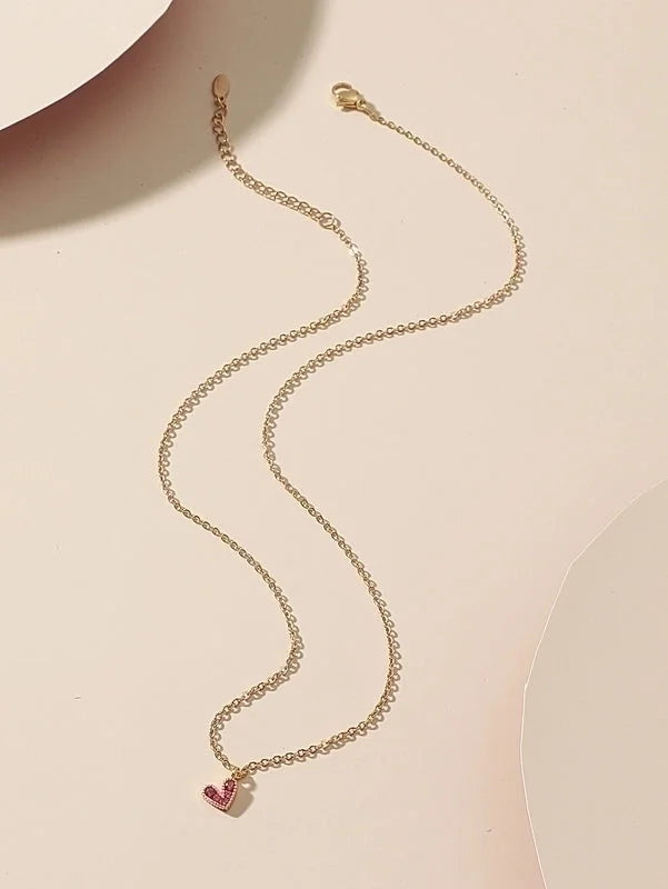 Women's Titanium Steel Pendent Inlaid Zircon Heart Necklace